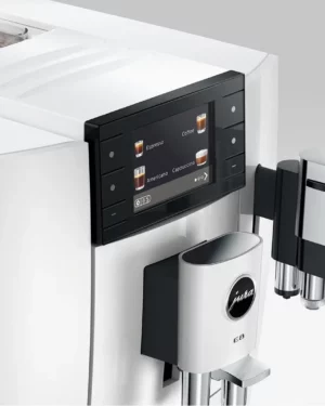 E8 oferuje większy komfort niż kiedykolwiek wcześniej: Dzięki zegarowi Coffee Timer i technologii J.O.E.® poranna kawa będzie gotowa, gdy tylko wstaniesz z łóżka, aby zachęcić Cię do rozpoczęcia kolejnego dnia. Asystent jakości Quality Assistant sprawia, że konserwacja E8 oszczędza zasoby i gwarantuje maksymalny poziom higieny dla nieograniczonej przyjemności picia kawy. 3,5-calowy kolorowy wyświetlacz z bocznymi przyciskami pozwala entuzjastom kawy łatwo poruszać się po tych wymiarach przyjemności, a poszczególne kolory ułatwiają orientację.