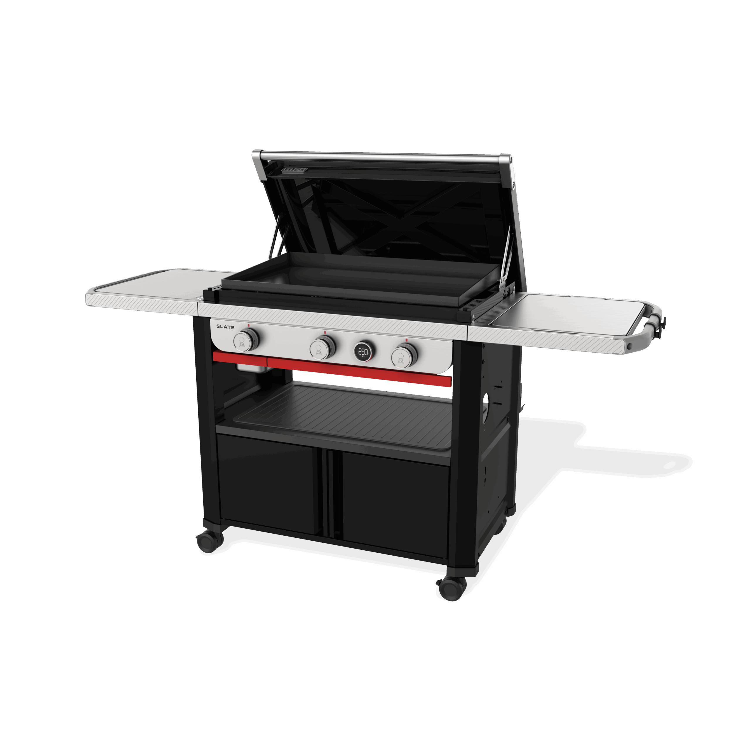 Czerp większą radość z grillowania za pomocą przełomowej płyty Weber® SLATE GPSB 76 cm Premium z cyfrowym wyświetlaczem temperatury oraz dużą powierzchnią przyrządzania, która osiąga temperaturę ponad 260°C i zapewnia równomierne rozprowadzanie ciepła na całej przestrzeni, co stanowi gwarancję spójnych wyników grillowania niezależnie od miejsca ułożenia na płycie. Nieprzywierająca powierzchnia przyrządzania pokryta emalią porcelanową umożliwia przyrządzanie wielu potraw, w tym soczystych smashburgerów, aromatycznych dań stir-fry czy też pięknie opieczonych owoców morza i warzyw. Ponadto dzięki systemowi przygotowywania, przyrządzania i przechowywania Weber Works masz pod ręką przybory do grillowania i czyszczenia. Możesz także przenosić składniki i przyprawy z kuchni na płytę, przekształcić stolik boczny w stanowisko przygotowywania oraz przechowywać przybory w szczelnie zamkniętych pojemnikach (akcesoria sprzedawane oddzielnie).