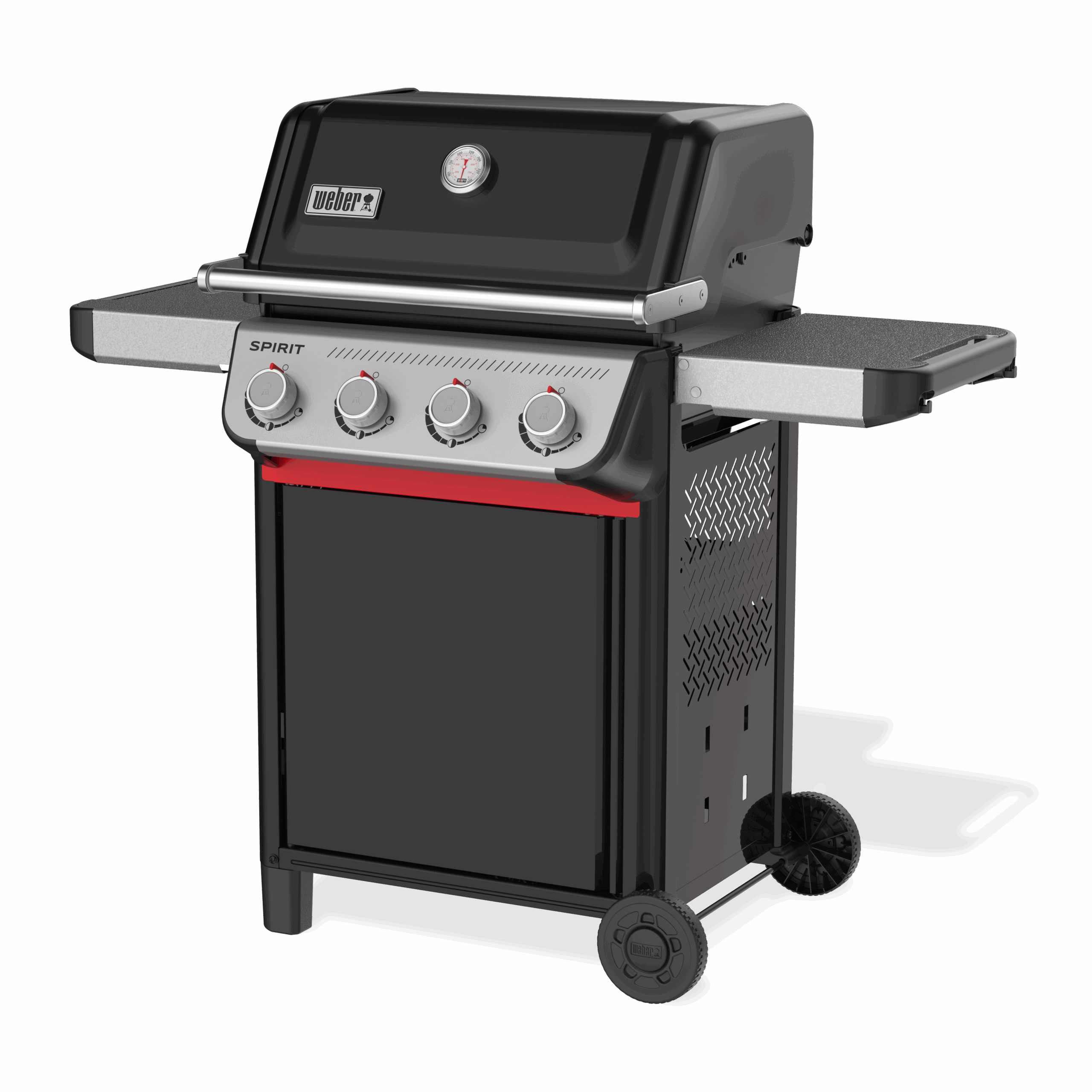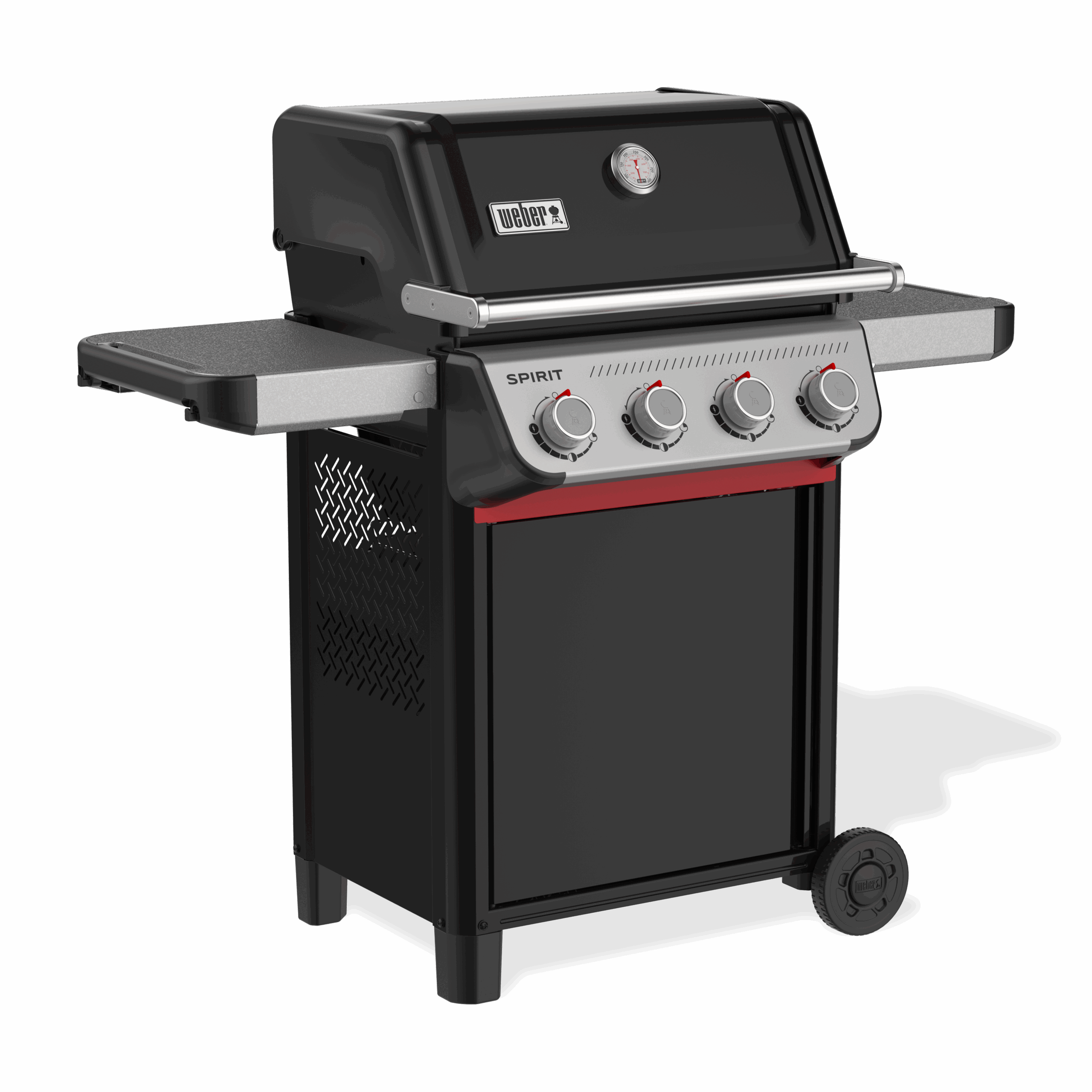 Grilluj jeszcze smaczniejsze potrawy na zaprojektowanym od nowa 4-palnikowym grillu gazowym Spirit® E-415. Zapalaj poszczególne palniki jedną ręką, używając zapłonu Snap-Jet, i precyzyjnie kontroluj temperaturę w pełnym zakresie. Wykorzystaj w pełni swoją przestrzeń, dodając różnorodne akcesoria Weber Works, które zatrzaskują się na obu szynach bocznych.* Talerze, przyprawy i narzędzia będą zawsze pod ręką dzięki stolikom bocznym, które możesz wygodnie złożyć, gdy potrzebujesz więcej miejsca.