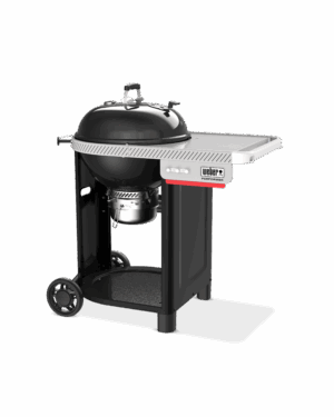 Ciesz się cudowną wydajnością grilla kulistego Weber® oraz pomysłową przestrzenią do przygotowywania i podawania potraw za sprawą grilla węglowego Performer 57 cm. Ten grill jest zabudowany na wózku premium z solidną półką, stolikiem bocznym i szyną boczną Weber Works, która pasuje do akcesoriów zatrzaskowych.* Dwa kółka ułatwiają przemieszczanie grilla. Grilluj pewnie przez wiele lat dzięki tym samym cechom i funkcjom, co kultowy grill Weber®, w tym ręcznie nakładanej, odpornej na zarysowania i rdzę powłoce z emalii porcelanowej, regulowanym otworom wentylacyjnym, które umożliwiają kontrolę temperatury wewnątrz grilla, oraz ulepszonemu systemowi czyszczenia One-Touch, który sprawia, że usuwanie popiołu jest szybkie i łatwe. Uchwyt pokrywy Tuck-Away zapewnia wygodne miejsce do umieszczenia pokrywy z boku misy, a uchylny ruszt do grillowania odchyla się z dwóch stron, co ułatwia dodawanie paliwa podczas grillowania. Ruszt do grillowania pasuje także do okrągłych przyborów do grillowania Gourmet BBQ System, dzięki czemu możesz odkrywać więcej sposobów grillowania.